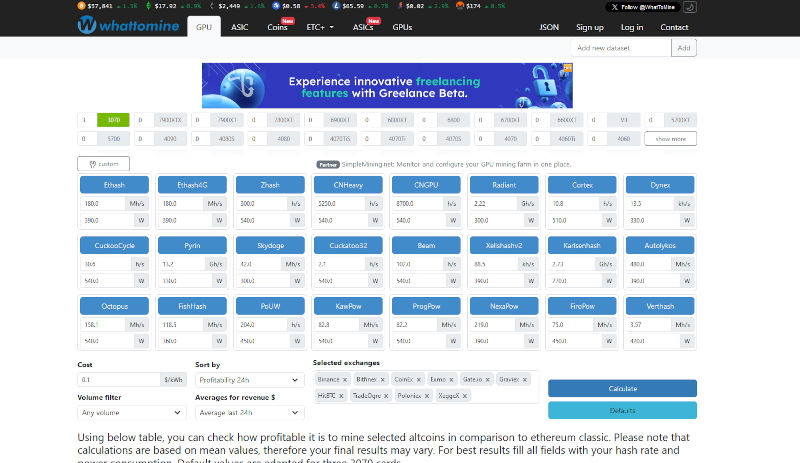 Užitočný nástroj je na webovej stránke https://whattomine.com, kde si zvolíte svoje parametre a nástroj vám vypočíta ziskovosť od hodinovej až po mesačnú.